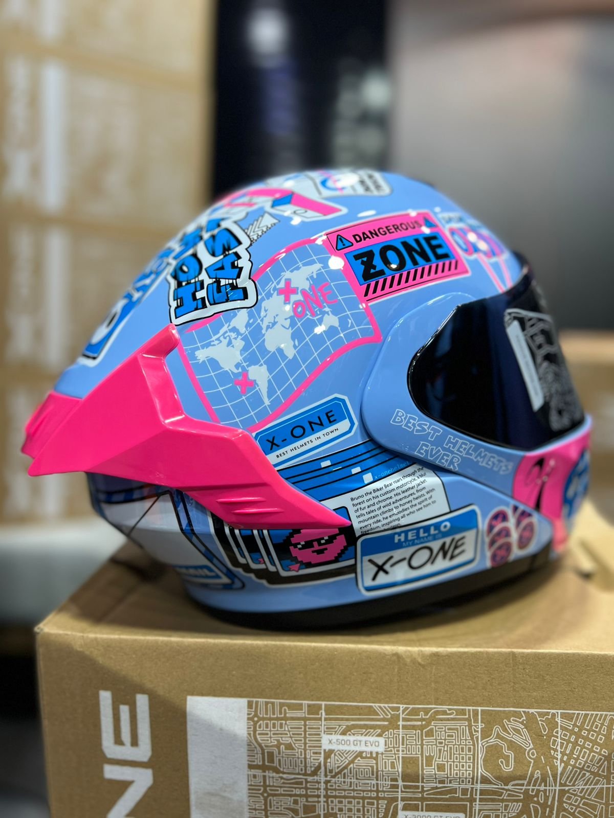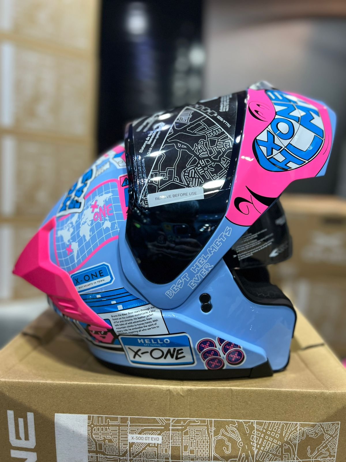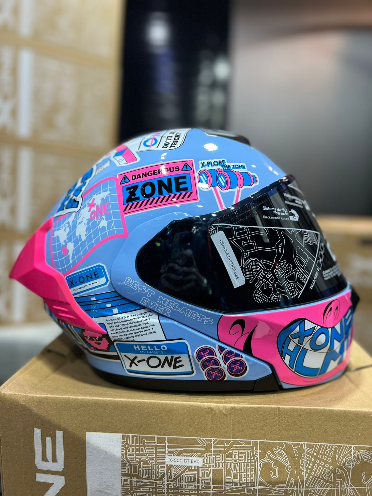 Casco Abatible X-ONE X-3000RS Exuan Celeste Rosado
