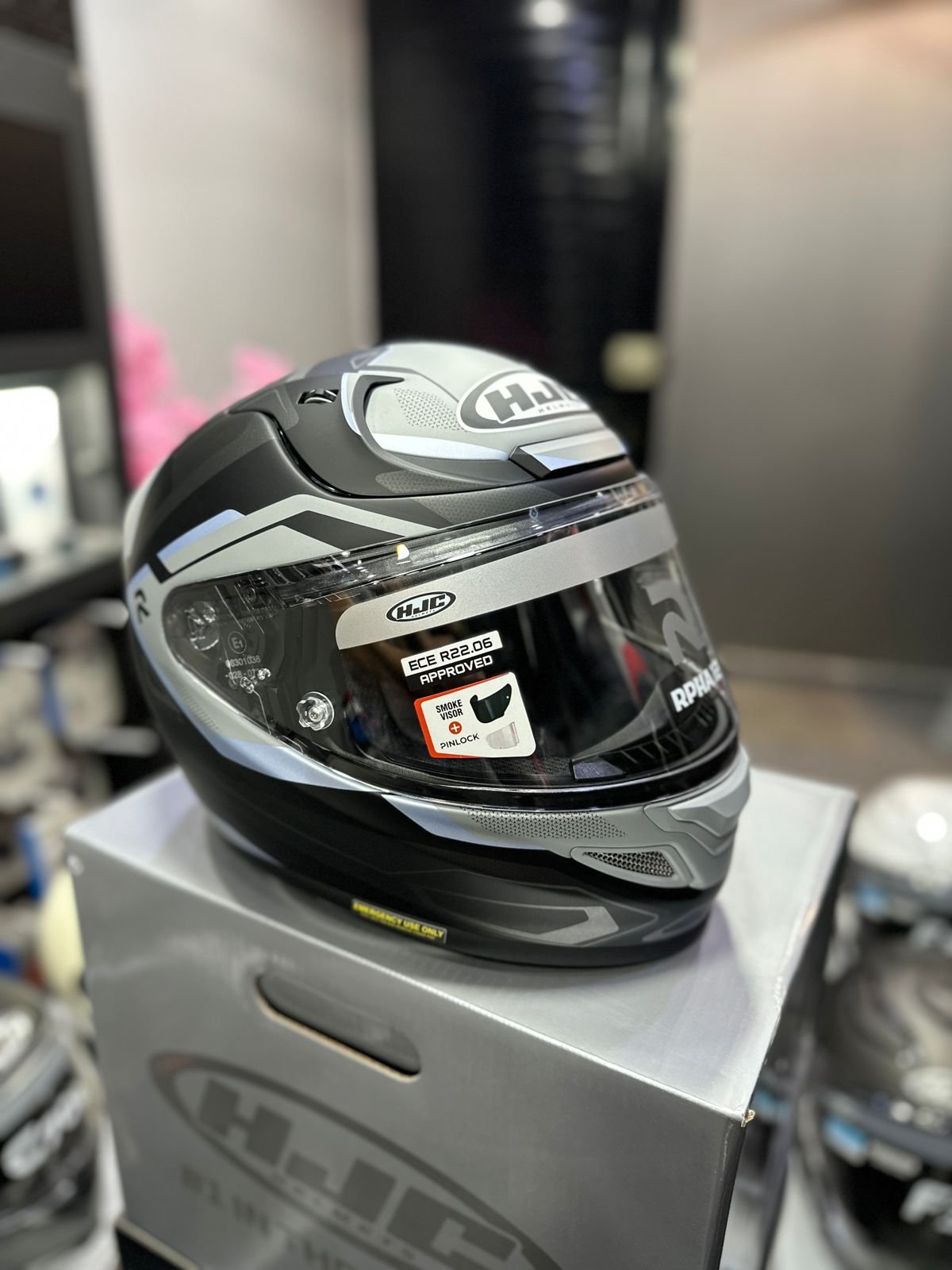Viene de serie con visera 2D transparente y Dark Smoke, Pinlock, mentonera y deflector de aliento.